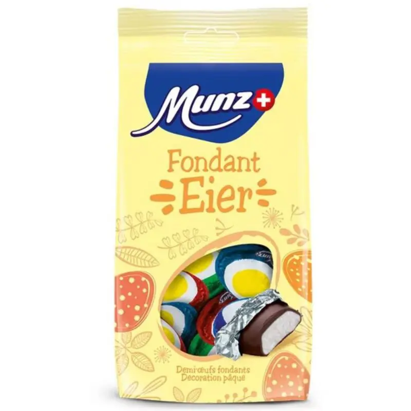 Die Munz Fondant-Eierhälften sind ein Festtagsvergnügen, das sowohl Kinder als auch ältere Menschen lieben werden! Es ist ein einfaches, aber köstliches Bonbon mit herrlichem Geschmack. Schweizer Süssigkeiten vom Feinsten!