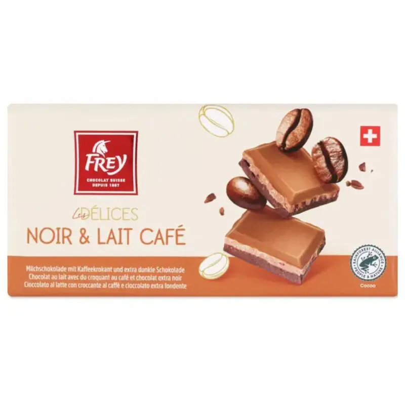 Godetevi la più straordinaria combinazione di cioccolato al latte e fondente con il caffè. Il cioccolato Frey Duett al caffè è perfetto per le giornate estive e soleggiate.