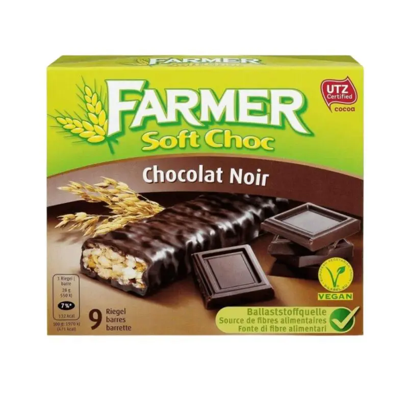 Se vi piacciono i dolci e la vita sana, le barrette di cioccolato fondente Farmer 9 Soft Shock sono il modo migliore per soddisfarvi! Una confezione di questo delizioso piacere contiene 9 barrette di cereali, da condividere con la famiglia e gli amici.