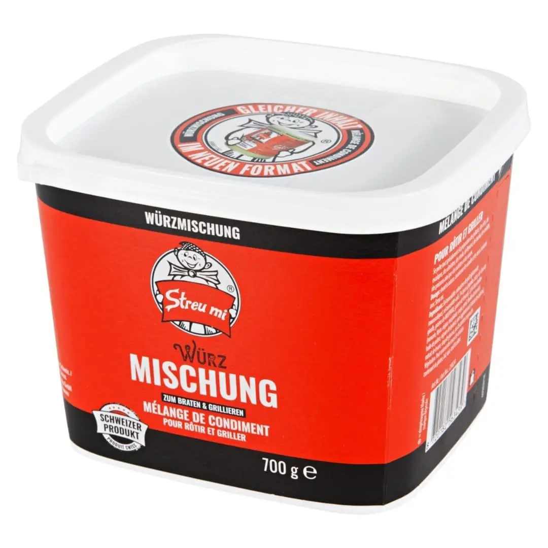 The well-known and popular Streu mi Rot spice is ideal for roasts and grilled meats of all kinds, schnitzel, chops, steaks, sliced meat, meatloaf, poultry, fish, raclette, and sauces!
