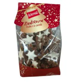 Soft, moist, and delicately sweet, these cinnamon stars are a timeless favorite. Made with almonds, warm cinnamon, and topped with a smooth white egg-white icing, they deliver the unmistakable flavor and texture that define this traditional Swiss treat. One bite, and you’ll feel like you’re at a Christmas market in the Alps.